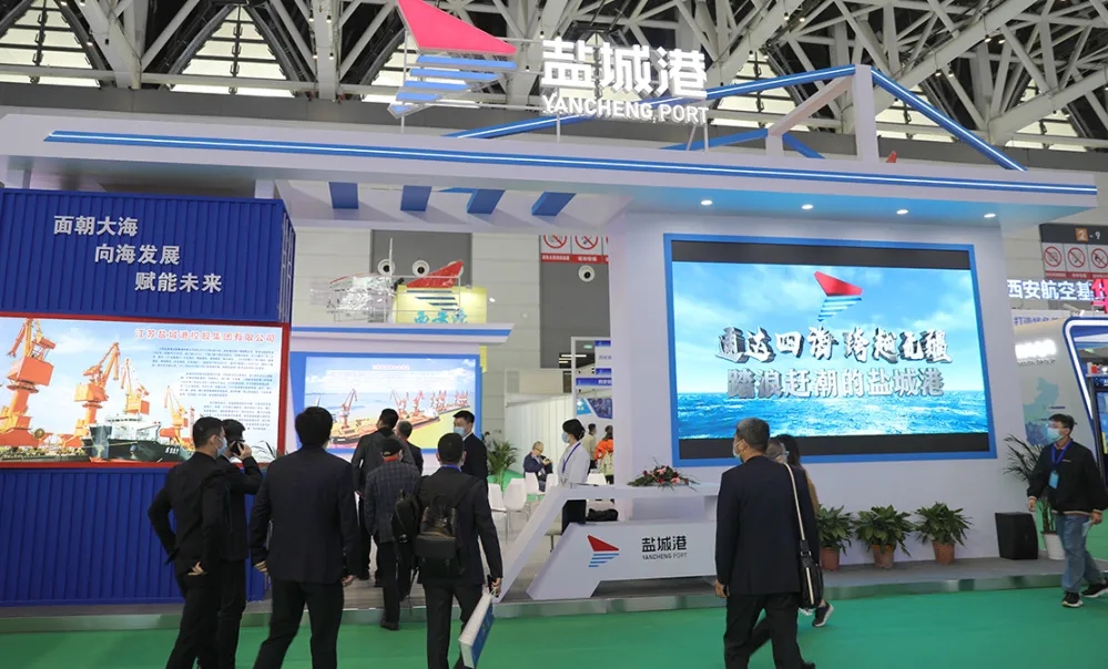 展会上,盐城港展区充分利用图片、视频、文字等形式,将盐城港贯彻“内河港口网络化、海河联运一体化;港口运营智能化、港航管理现代化”总体要求,坚持高质量发展所取得的成就呈现给广大观众,吸引了众多参展商、企业和观众的驻足关注。同时,也生动展现了盐城港致力打造绿色生态、智慧便捷、安全高效的沿淮河生态经济带和环黄海生态经济圈“一带一圈”重要节点枢纽港,争创世界一流港口的美好前景。