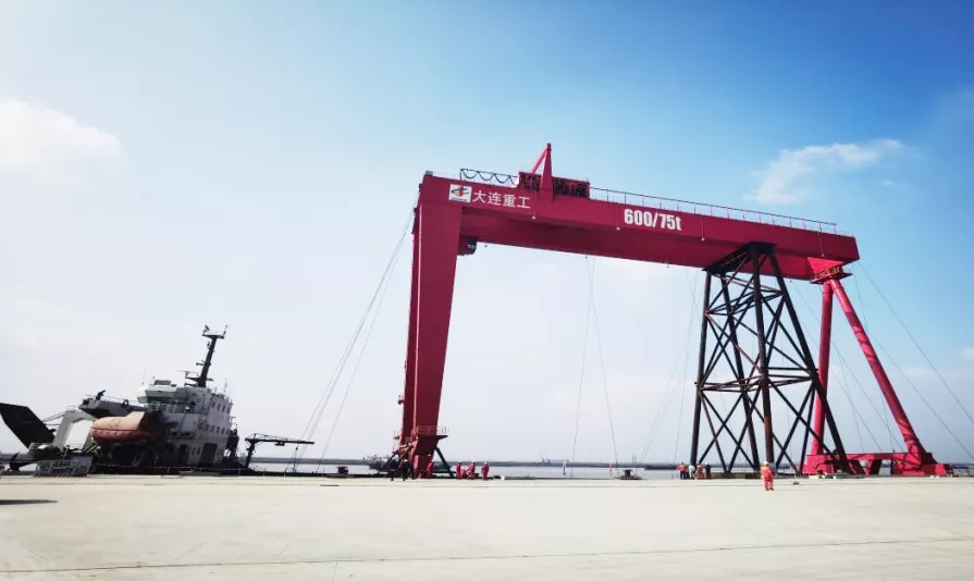 600T龙门吊为双主梁、大吨位、大跨度门式起重机。该机主要由门架结构、上下小车、起重机运行机构、电气设备和维修用门框式检修吊等组成,额定起重能力 600 吨,具有节能环保、可靠性高、起重能力大、维修保养工作量小、易于实现自动化操作等优点,将大大提升公用重建码头的生产效率和货运能力。