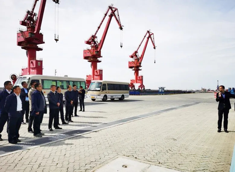 会前,与会人员实地察看了射阳港区3.5万吨级通用码头、射阳港联检业务中心建设现场,详细了解相关情况。
