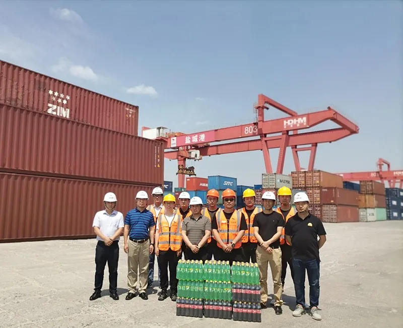 按照德信体育 党委关于安全生产月具体部署和防暑降温工作要求,6月2日,盐城港集装箱集团领导班子到盐城港集装箱海港码头前沿、堆场等处慰问,为一线职工送上降暑饮品,并检查、部署码头安全生产和夏季防暑工作。