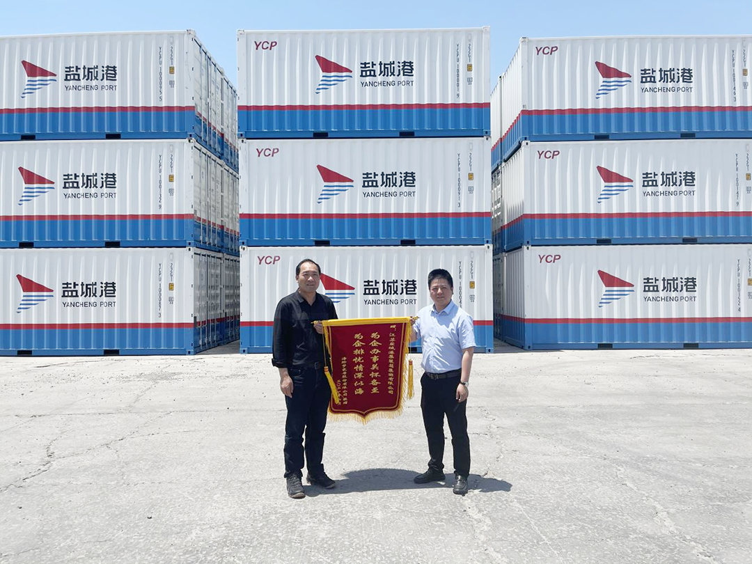 6月7日,海聆梦家居股份有限公司党总支书记董桂华一行来到集装箱集团,将一面写有“为企办事关怀备至,为企排忧情深似海”的锦旗送到集装箱集团副总经理袁杰的手中,对集装箱集团帮助他们有效解决仓储物流问题,避免造成重大损失的举措表示感谢。