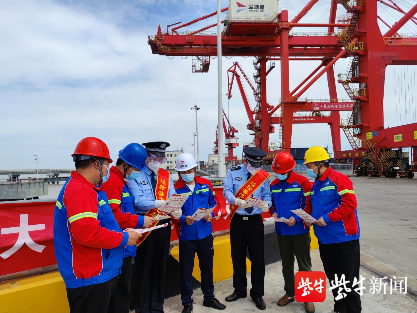 为切实提高码头一线工人的维权守法意识和知法用法能力,5月27日上午,江苏盐城出入境边防检查站组织普法小分队,顶着炎炎热日来到盐城港大丰港区集装箱码头,开展“美好生活·民法典相伴”主题宣传活动,提升码头一线工人守法意识和学法热情。