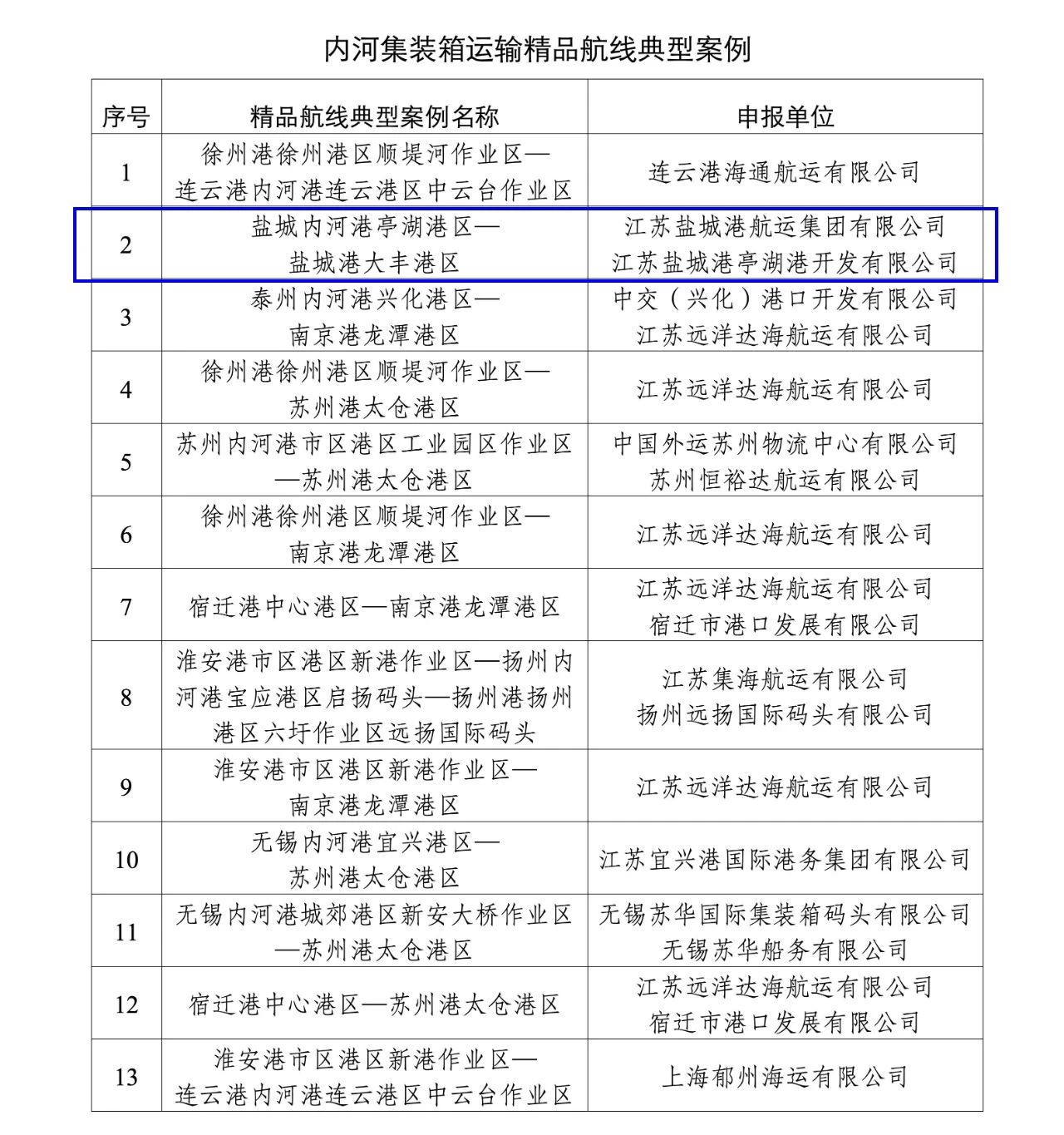 大丰港区至亭湖港区之间开辟的盐城港内河集装箱绿色示范航线,着力打造从内河运输到车辆短驳到堆场提落箱到码头装卸“全绿”的“公交快航”和“直航”服务产品,进一步打通盐城地区集装箱运输物流路径,为企业提供更加便捷高效的运输方式。
