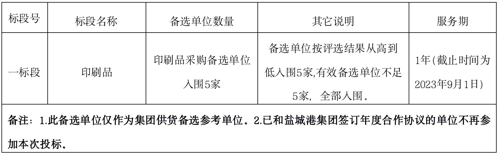 二、本次招标项目共分为一个标段,标段名称及备选数量如下:
