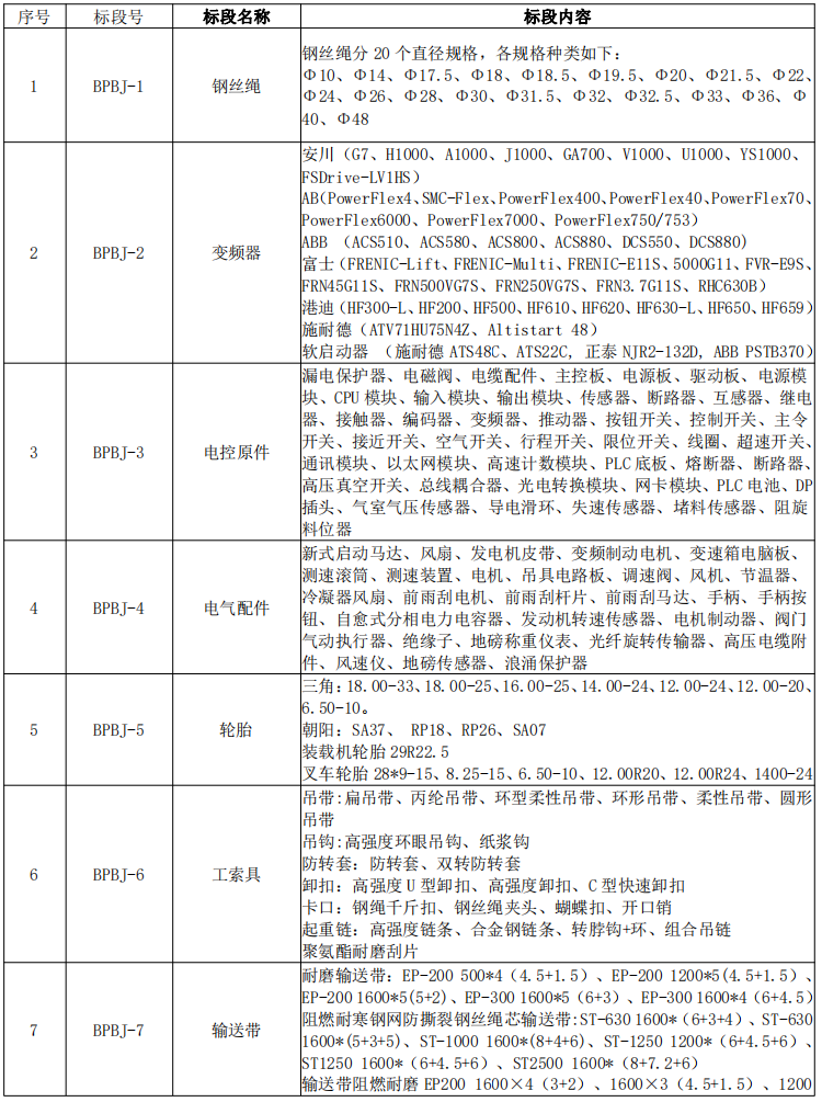 B部分:港口设备维修。招标范围:为德信体育(中国)官方网站 2023年港口设备提供设备的维修、保养及质保期服务等,共分为 4 个标段,具体情况如下: