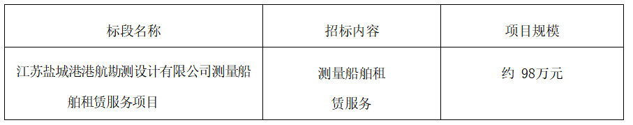 一、 江苏盐城港港航勘测设计有限公司 就江苏盐城港港航勘测设计有限公司测量船舶租赁服务项目进行公开招标,诚邀合格的投标人前来报名参加。