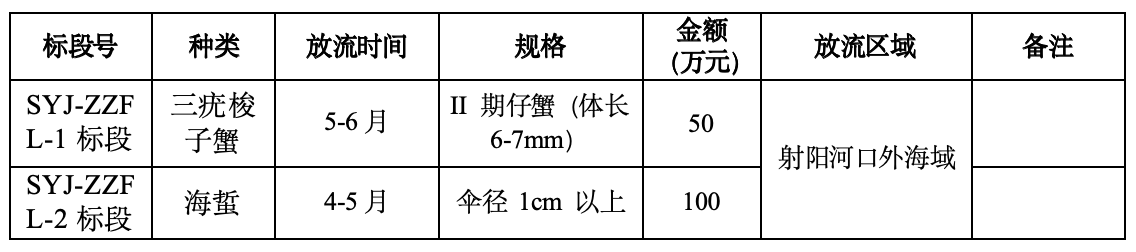 ②SYJ-ZZFL-2标段:包括海蜇的人工增殖放流,采购费为100万元。