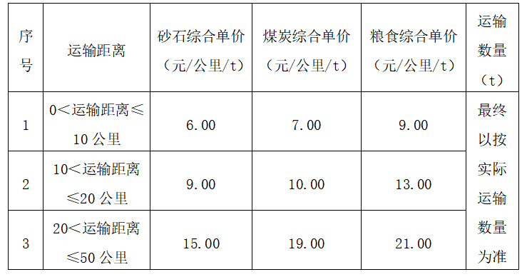 5.运输要求:由于本项目临时性、应急性发货情况较多,出租单位接到装车通知后,两小时之内必须到达装车地点,承运的每批货物必须专车运送,规定时间内必须到达卸货地点。