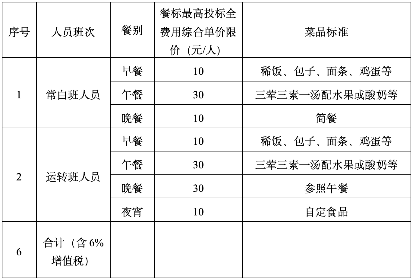 注:1、本报价数量最终费用以实际就餐量为准,双方签字确认后据实结算;
