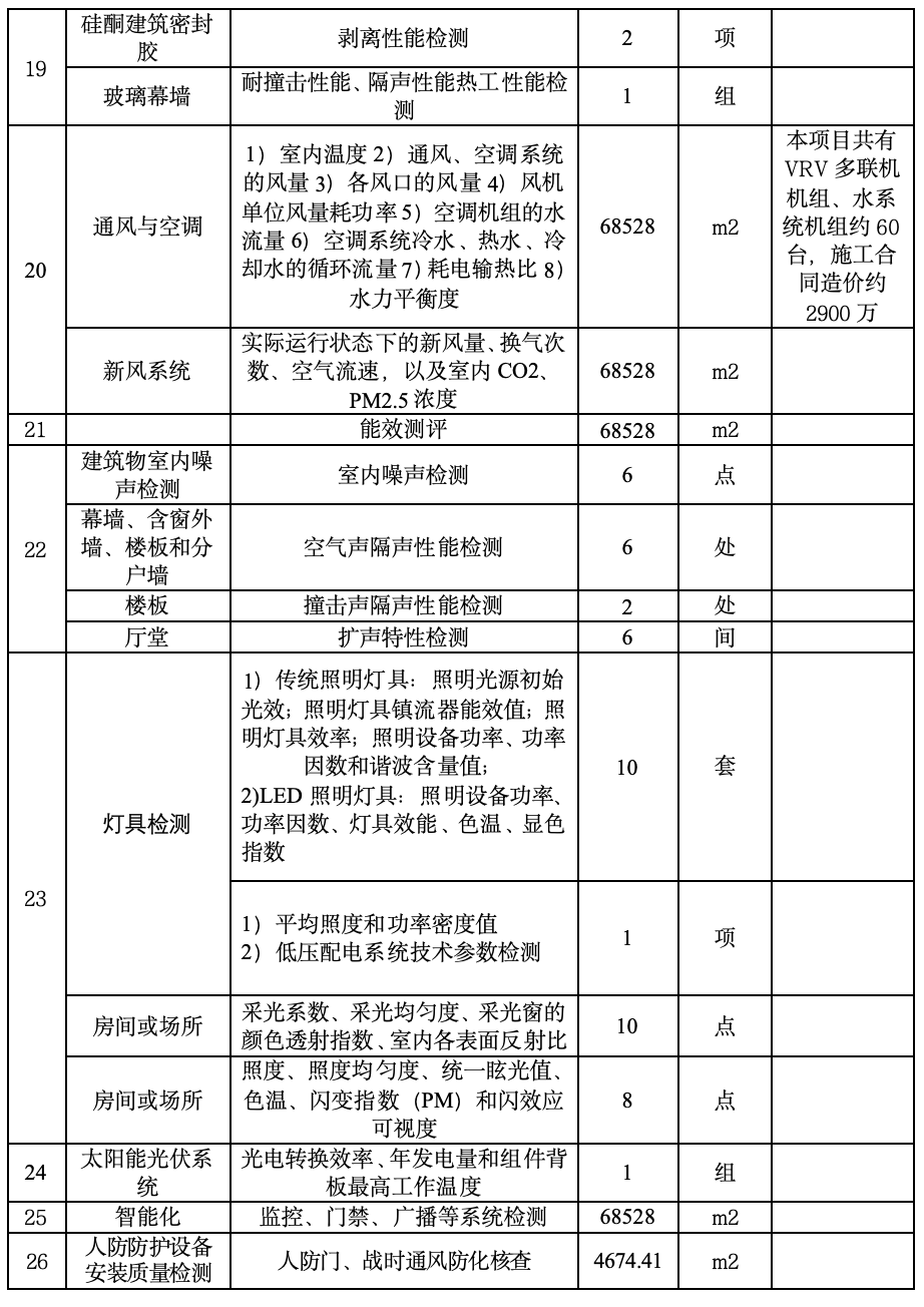 (9)检测清单:本次招标检测清单明细如下: