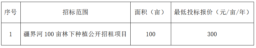 1、项目名称:疆界河100亩林下种植公开招租项目