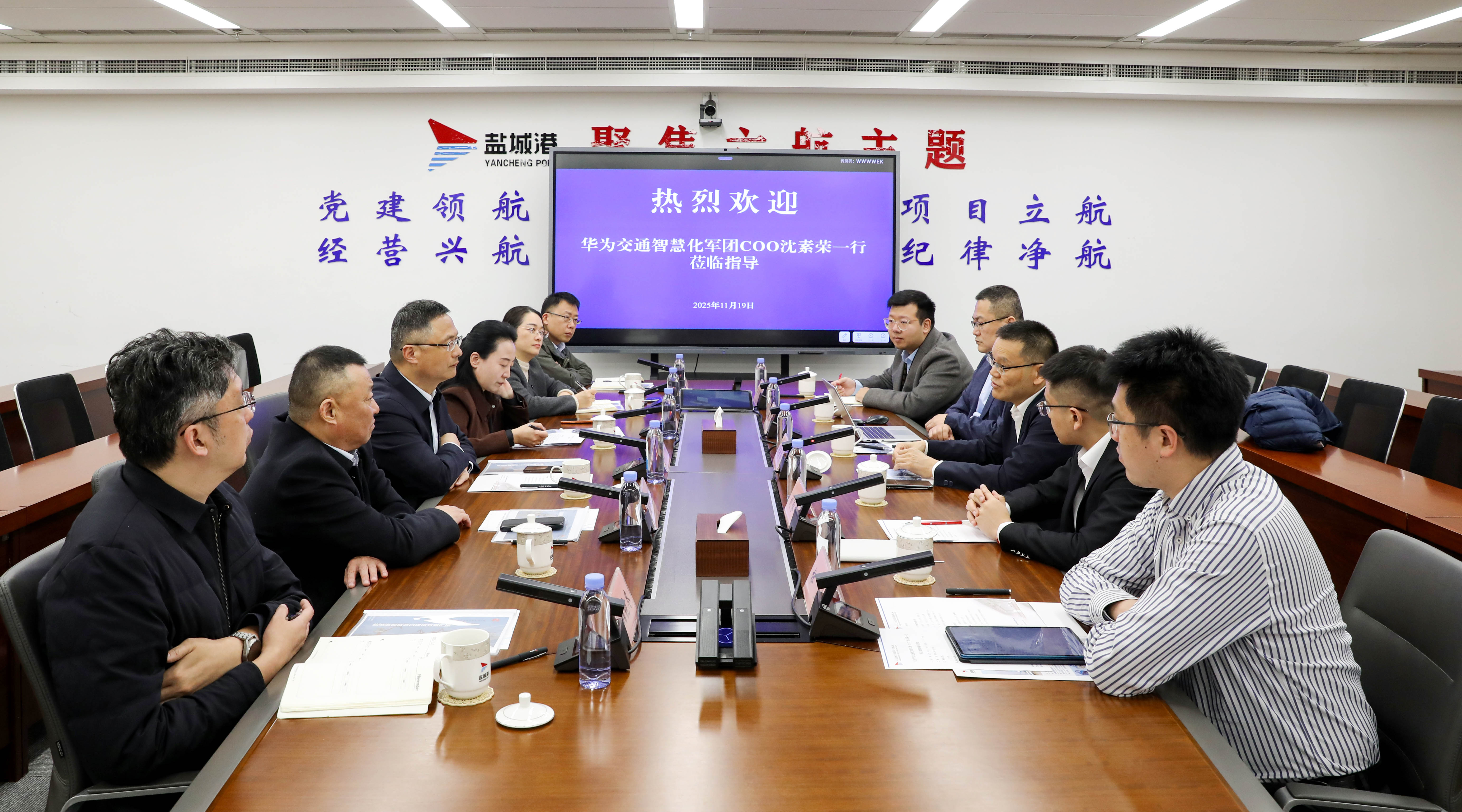 11月19日,集团党委书记、董事长陆帅会见华为交通智慧化军团COO沈素荣一行,双方就深化业务合作进行交流。集团总经理袁欣,集团党委副书记周旭东,华为盐城业务部总经理刘家赫,华为及盐城港相关单位、部门负责人等参加。