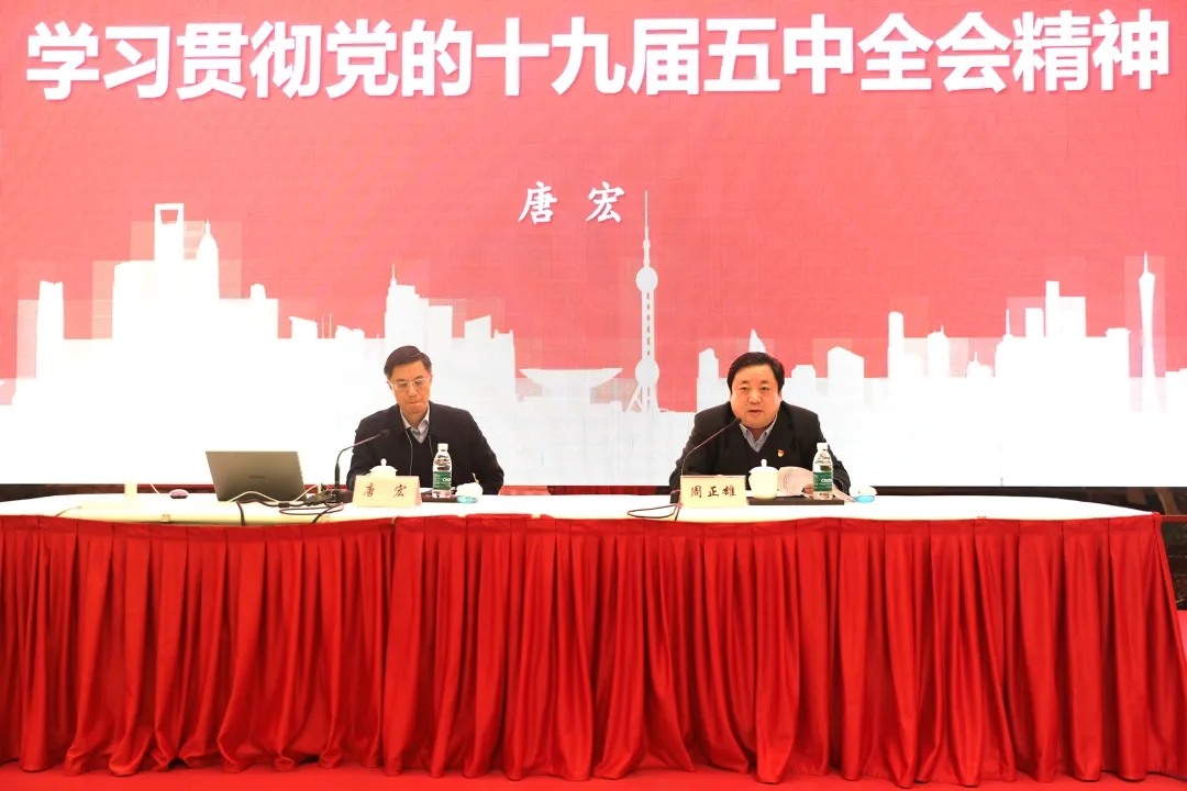 唐宏从“深刻认识我国进入新发展阶段的重大意义、有利条件和重要特征”、“准确把握2035年远景目标和‘十四五’时期我国发展的指导方针、主要目标、重点任务”、“牢牢把握构建新发展格局的战略构想和重要着力点”、“坚持党的全面领导,动员各方面力量为实现‘十四五’规划和2035年远景目标而团结奋斗”四个方面,结合我市实际情况,对党的十九届五中全会精神进行了全面阐释和深入解读。