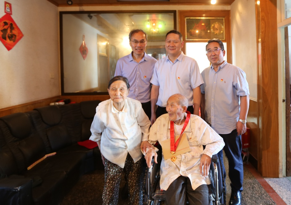 在建国前入党老党员奚正银老人家中,陈正华看到97岁的老人身体硬朗、精神矍铄,感到十分高兴。他握着老人的手认真询问老人的生活及儿女就业工作情况,并为老人戴上“光荣在党50年”纪念章,送上慰问金,感谢他长期以来为党和国家作出的积极贡献,并嘱咐他保重身体。同时,陈正华还要求随行青年党员积极向老同志学习,定期上门开展志愿服务活动,陪伴老党员、倾听他们曾经的故事,在向革命前辈学习革命精神的同时,将党最新的方针政策、会议精神及时传达给老党员。