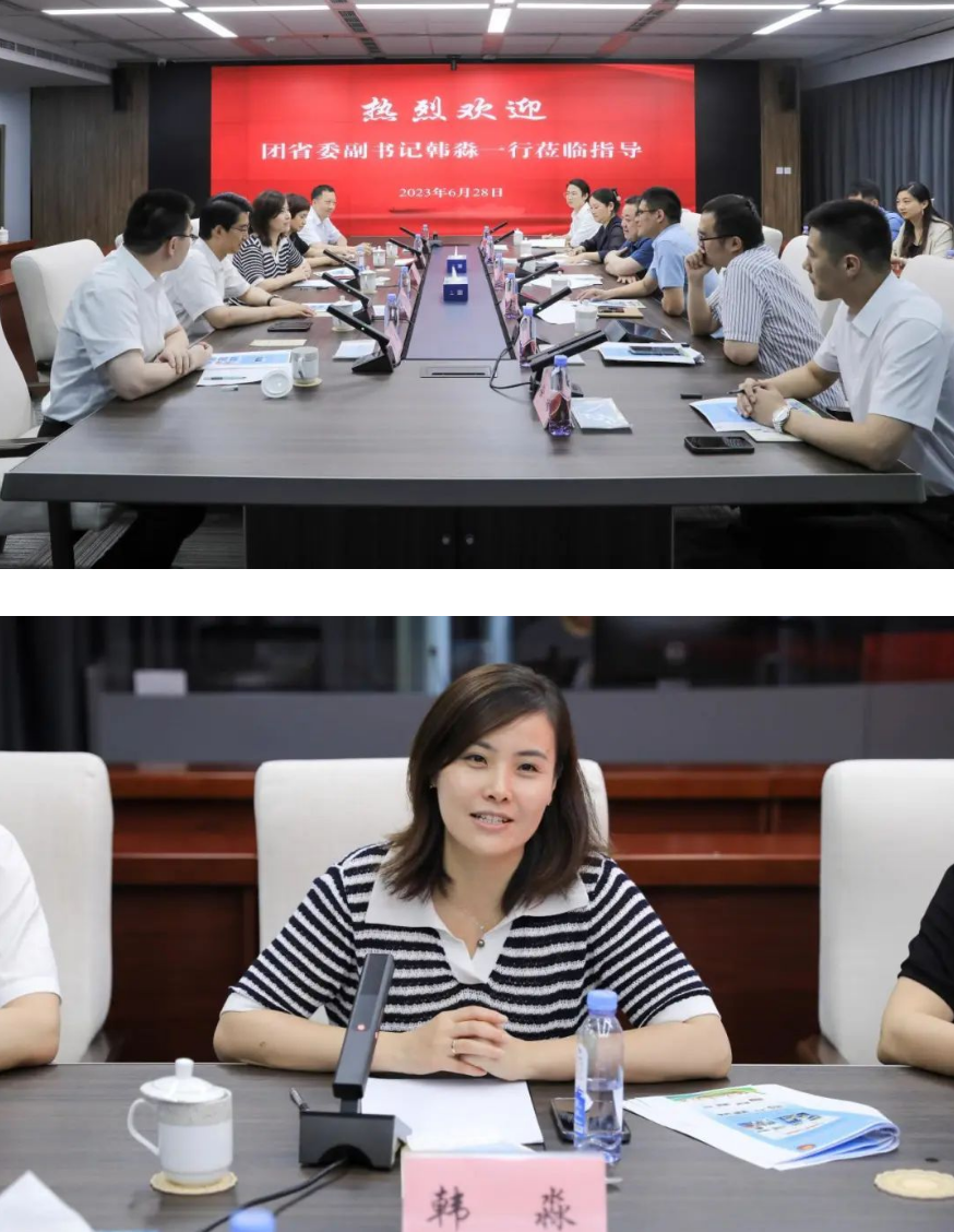 6月28日,共青团江苏省委副书记韩淼来我集团调研。集团党委书记、董事长周正雄接待韩淼一行。团省委二级巡视员施静芝,团市委书记张阳光,团市委副书记陈凡,集团党委委员、副总经理徐振山,集团团委书记孙青等参加。