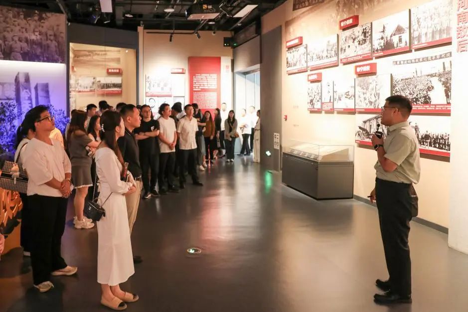 在领学员的带领下,青年们依次在各个站点进行研学,通过珍贵的历史文物、生动的影像资料和场景复原展示,大家深入了解新四军在华中敌后抗战的英勇事迹,深刻感受到铁军将士们坚定的斗争信念和无私的奉献精神。