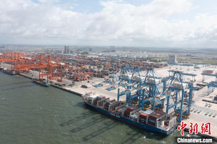 图为航拍广西北部湾港钦州自动化集装箱码头。王伟臣 摄