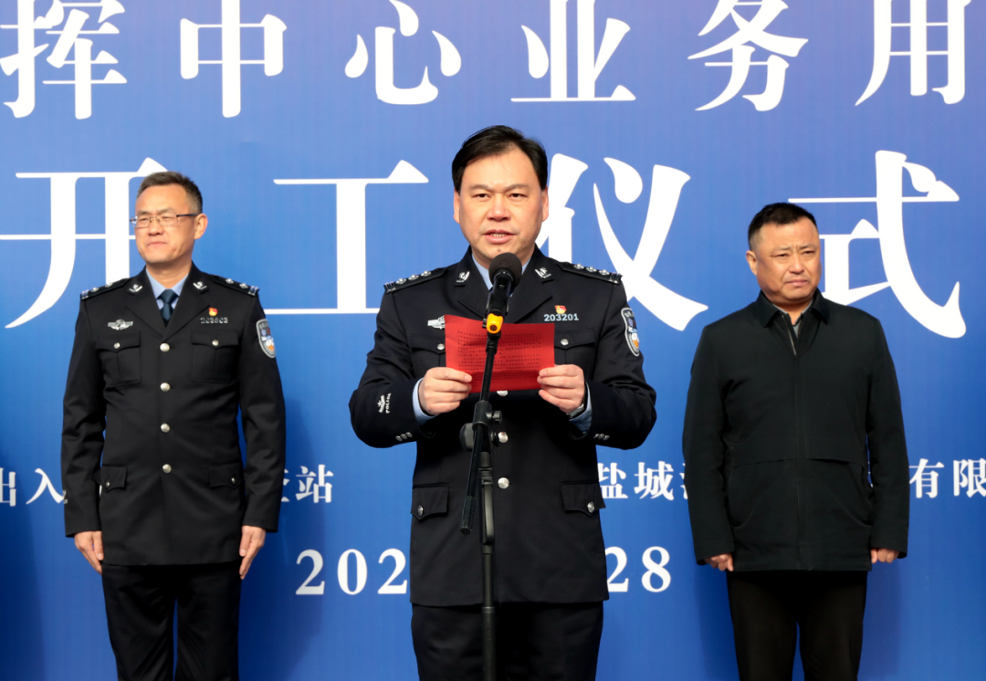 李兴华在致辞中表示,边检指挥中心是边检机关指挥调度的中枢、快速反应的龙头、辅助决策的智囊、情报信息的中心、服务群众的窗口,承担着重大突发事件处理、紧急警务活动处置、群众(旅客)求助等重要工作。盐城边检指挥中心的正式启动建设,必将更加有力助推盐城港口岸科学长远发展,更为精准地保障盐城港4个港区边检勤务和出入境通关服务,更高水平满足盐城全域开放的需求。盐城边检站全体民警职工要以新指挥中心业务用房建设为契机,以更加饱满的热情和更加优良的作风,持续推动边检服务管理创新,落实便民利企举措,全力服务促进地方经济社会发展。同时要进一步提高站位、主动对接,全力服务盐城港“五新”港口建设,支持盐城港打造成绿色、生态、智慧、平安、美丽的沿淮河生态经济带和环黄海生态经济圈“一带一圈”重要节点枢纽港,不断增强港口对沿海发展的支撑力,共同为盐城勇当沿海地区高质量发展排头兵作出新的更大贡献。