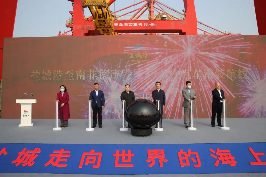 11月1日,盐城港至南非德班港国际直达汽车滚装航线开航仪式成功举行,标志着盐城港籍汽车滚装船首次走出国门,为国产汽车出口提供了新的出海通道,同时也为全市外向型经济发展提供了有力支撑。集团党委书记、董事长周正雄,集团党委副书记、董事、总经理陆帅,集团党委委员、纪委书记周旭东,集团党委委员、副总经理丁安广,集团副总经理袁欣,华晨国际香港有限公司总经理连东出席活动并共同启动开航仪式。