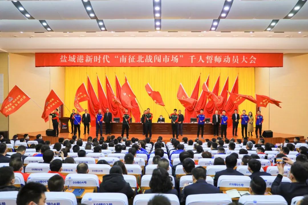 2月24日,盐城港新时代“南征北战闯市场”百日攻坚千人誓师动员大会胜利举行。集团党委书记、董事长周正雄出席会议并讲话。集团党委副书记、董事、总经理陆帅主持会议。集团领导班子成员,集团机关全体工作人员,各二级公司班子全体成员、各部门负责人,盐城港引航站中层以上人员,各内河港区班子成员,二级以下子(控)公司主要负责人,新时代“南征北战闯市场”百日攻坚活动全体人员等参加。