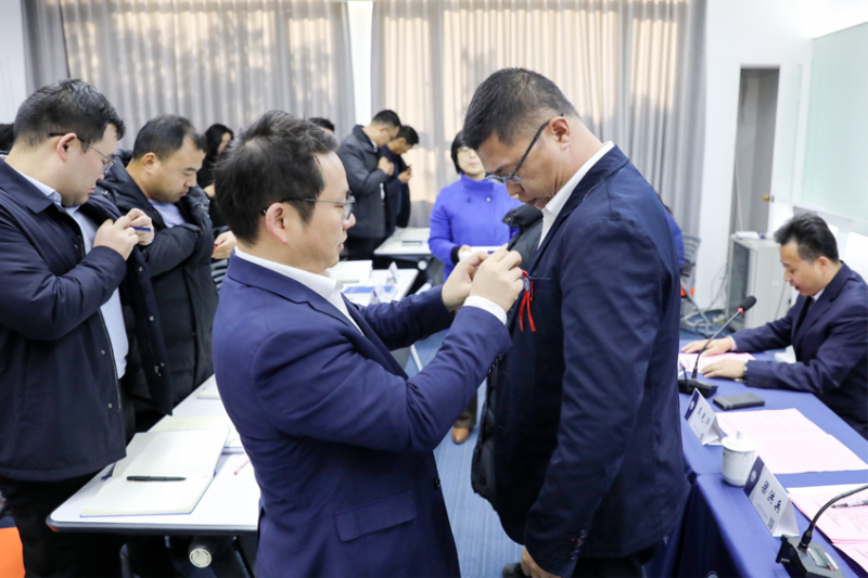 典礼上,吴先华院长为学员代表佩戴校徽,吴先华、梁洪兵共同为德信体育 代表授予班旗,这也代表盐城港的各位学员正式加入上海海事大学的大家庭。