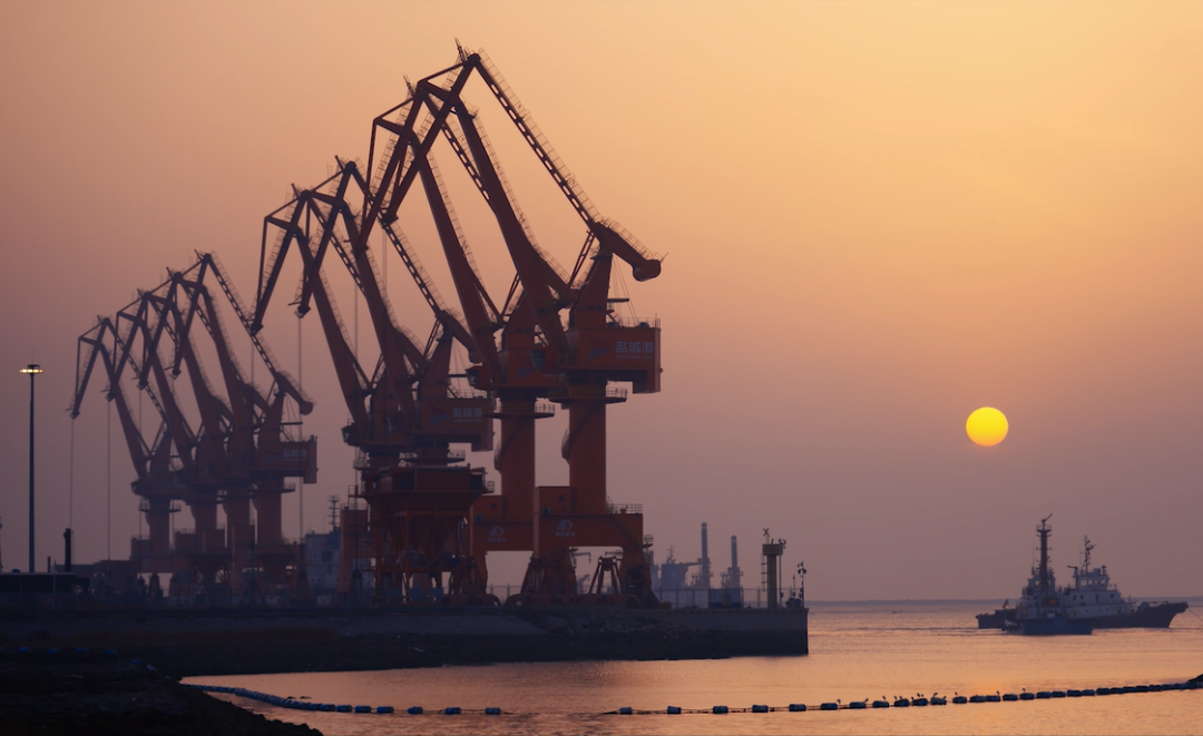 多年后,我们在大丰港区等你!在这里,你将看到万吨巨轮与高大门机光影交织、一派繁忙,处处彰显出盐城港主港区的勃勃生机。