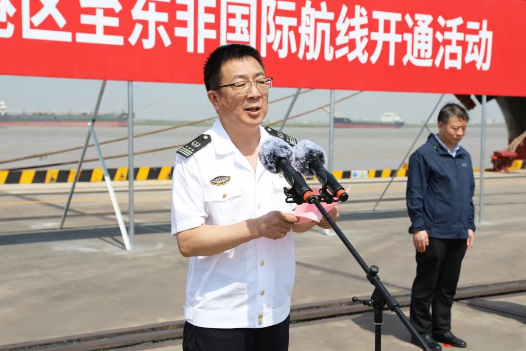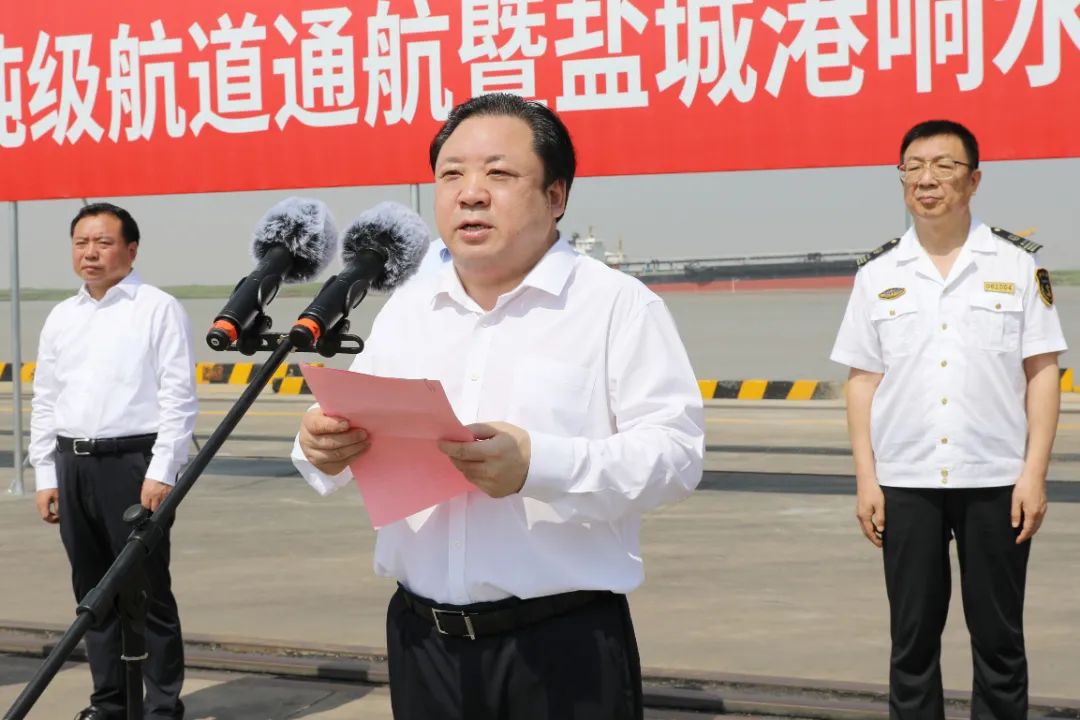 在全市上下深入学习贯彻市委八届七次全会精神,勇当全省发展新质生产力的“碳路先锋”,全面推进“水运江苏”建设和海洋经济高质量发展的重要时刻,6月13日上午,灌河口5万吨级航道通航暨盐城港响水港区至东非国际航线开通活动成功举行,标志着盐城沿海“一港四区”万吨级以上航道实现通航全覆盖,对盐城港加快构建“河海联运”新格局,推动沿海地区高质量发展,打造“蓝色经济”增长极具有重要意义。市委常委、副市长王连春宣布通航。德信体育 党委书记、董事长周正雄介绍相关情况。连云港海事局副局长丁星,响水县委书记郭超出席活动并致辞。市政府副秘书长陶晓林主持。