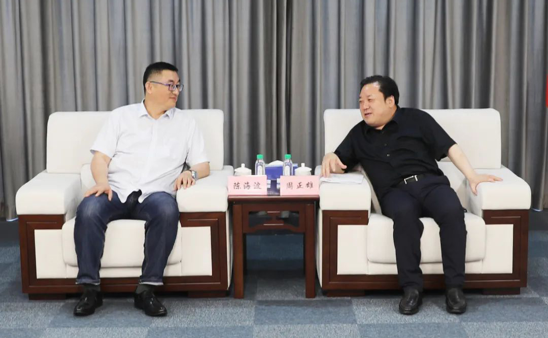 7月3日,集团党委书记、董事长周正雄会见深兰科技集团董事长陈海波一行,双方就开展合作进行交流。集团副总经理袁欣,集团相关部门负责同志等参加。