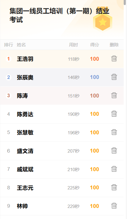 本次培训立足降本增效,创新采用电子签到、无纸化智能考试,一方面节约了时间、人力、纸张成本,另一方面省略了会前签到、批改试卷、统计排名等环节,大大提高工作效率,推动培训工作的信息化管理迈上新台阶。