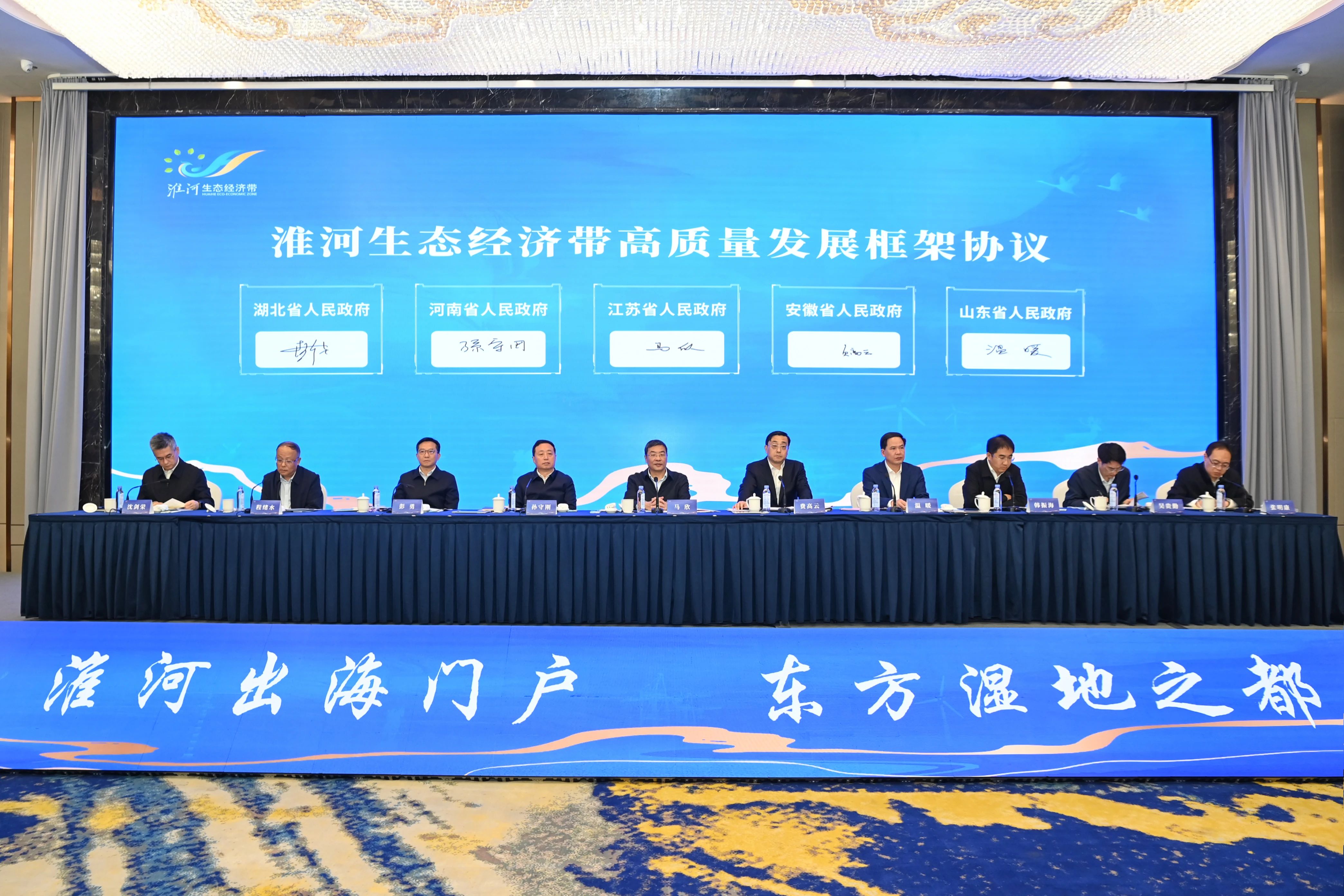 会上,五省领导围绕贯彻落实党的二十届三中全会提出的“构建跨行政区合作发展新机制”,深度融入和服务国家区域重大战略和区域协调发展战略,分别作了讲话,审议了2024—2025年度《淮河生态经济带省际重点合作事项》,并签署了《关于进一步协同推进淮河生态经济带高质量发展的框架协议》。