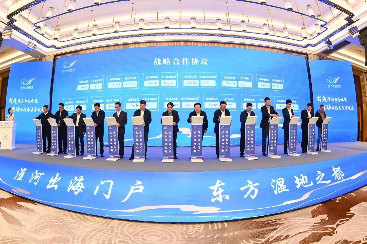 会议发布了《打造淮河黄金水道 推动沿淮高质量发展盐城倡议》和《淮河流域港航协作发展规划研究报告》。《倡议》提出,将全面推进《淮河生态经济带发展规划》实施,深化淮河流域城市群共建淮河黄金水道、共促产业转型升级、共谋绿色低碳发展、共绘美丽生态图景,共同推动沿淮高质量发展。《报告》提出,将构建以盐城港淮河生态经济带出海门户港为核心,淮河、京杭运河两大淮河流域主通道为主轴,形成承东启西、南北互济,多港口深度互联合作的“一核、两轴、四向、多点”的淮河流域港航发展总体空间格局。