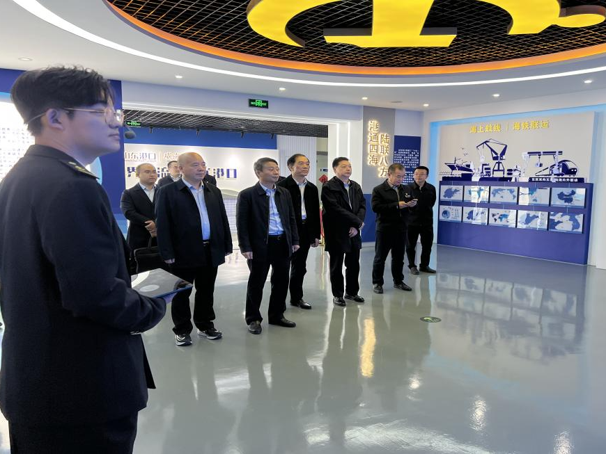 调研期间,一行人实地参观了山东港口集团集装箱码头、煤炭运输码头、自动化货物装卸堆场、远程指挥操控中心、汽车堆场等区域作业情况,详细了解山东港口发展规划、投资布局等方面的情况,并围绕港区口岸功能、物流配送、公司治理、经营生产等方面开展交流。