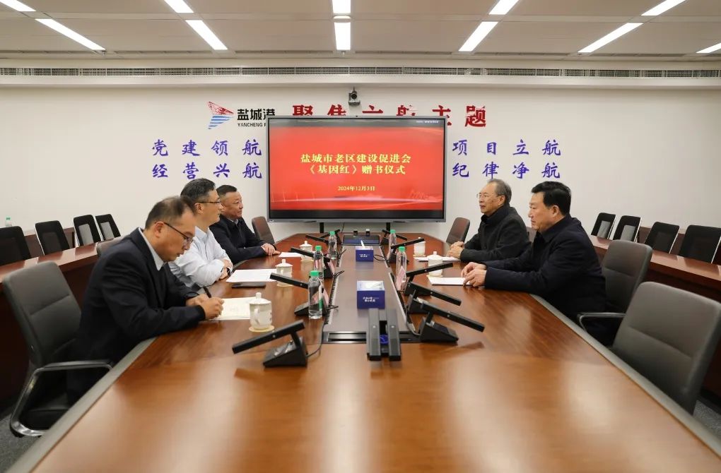 在习近平总书记来到盐城市考察新四军纪念馆一周年之际,12月3日,市老区建设促进会副会长茆训东、周广展来集团考察指导,并赠送《基因红—盐城市红色资源通览》系列图书。集团党委副书记、董事、总经理陆帅,集团党委副书记、纪委书记周旭东等参加。