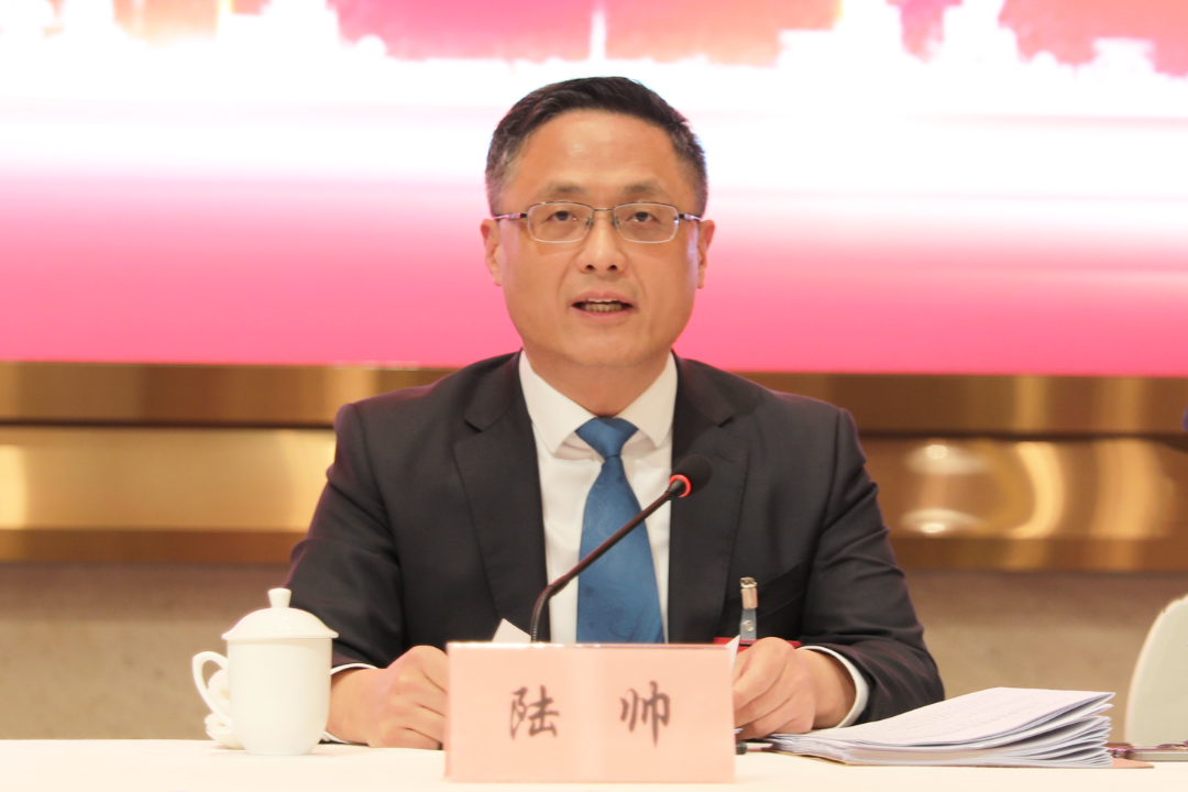陆帅在会上作题为《笃行实干展亮点 改革创新勇开拓 全力绘就盐城港高质量融合发展新篇章》的集团工作报告。