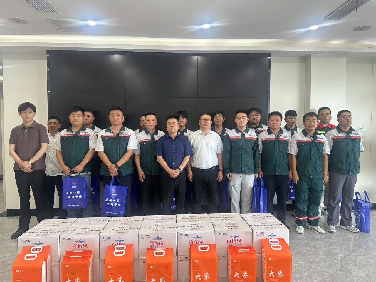 近日,受集团党委、董事会委托,集团总经理袁欣率队前往大丰港区边检站和通用码头,为坚守在高温下的职工送去关怀与清凉,切实保障高温环境下一线职工的劳动安全与身体健康。