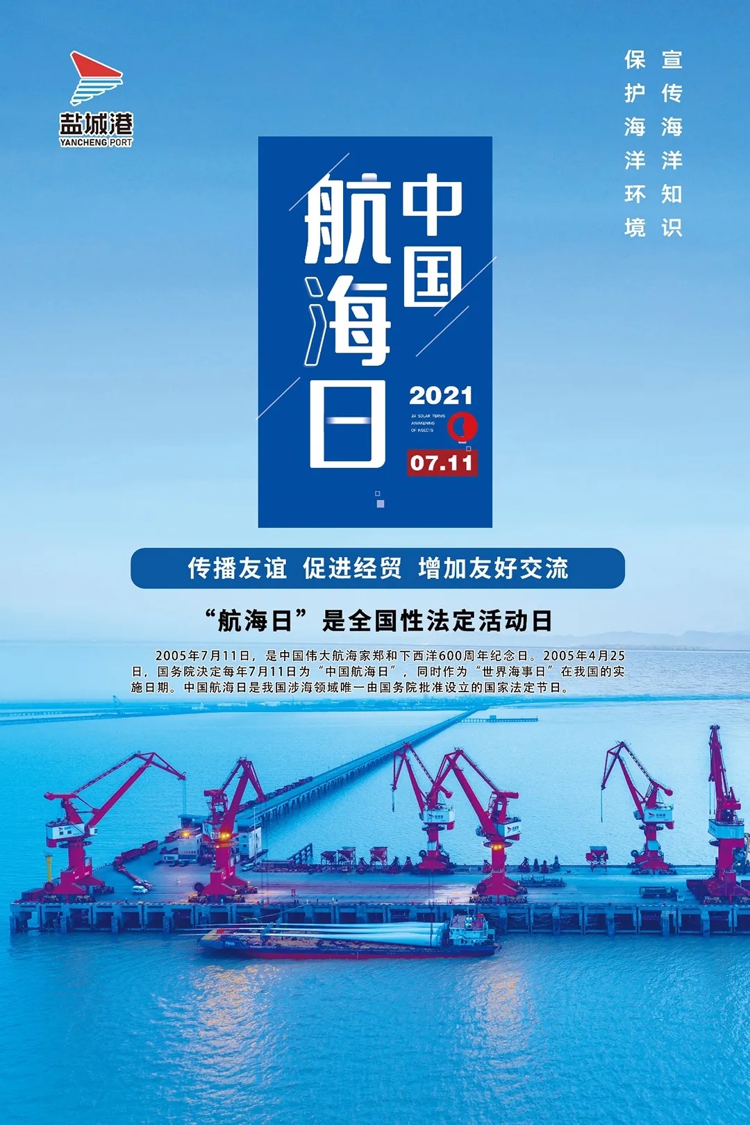 六百多年前,郑和的船队沿着海上丝绸之路,创下七下西洋的壮举,开拓了全新的航海事业。数百年后,又有一批批航海人,他们披荆斩棘、乘风破浪,担负使命、兴海报国,努力写就一段段新的航海传奇。7月11日,是第17个中国航海日,今天,也是每一个盐城港人的节日,作为新时代、新航程的追梦人,他们正以涓滴之力汇聚成昂扬向上的拼搏劲头。
