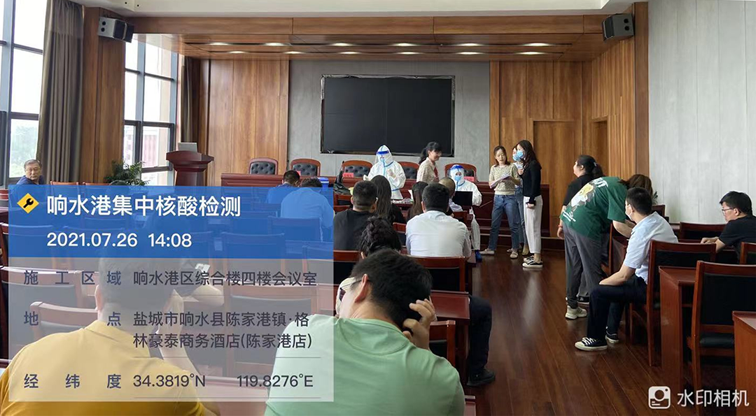 为提高工作效率,避免检测人员聚集,下午2时开始,响水港区采取“分时分段分区域”方式,错峰组织检测取样工作,截止下午4时,共计完成187人核酸检测工作。