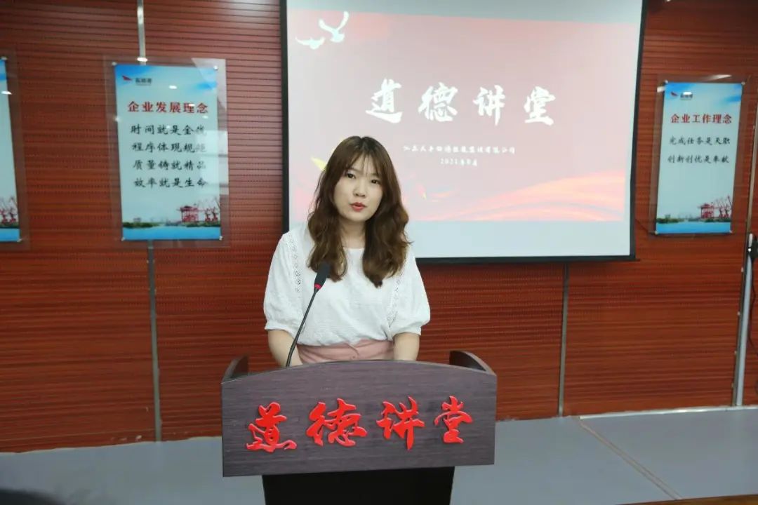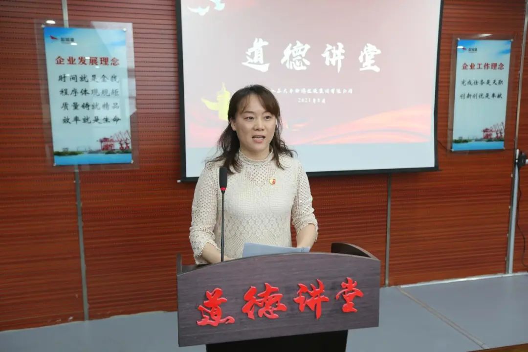 8月27日,大丰港区开展道德讲堂活动,大丰港集团党委委员、董事陆峰主持,集团工会、党群工作部相关人员,各公司工会副主席、优秀职工代表,各公司子女参加高考的职工代表参加。