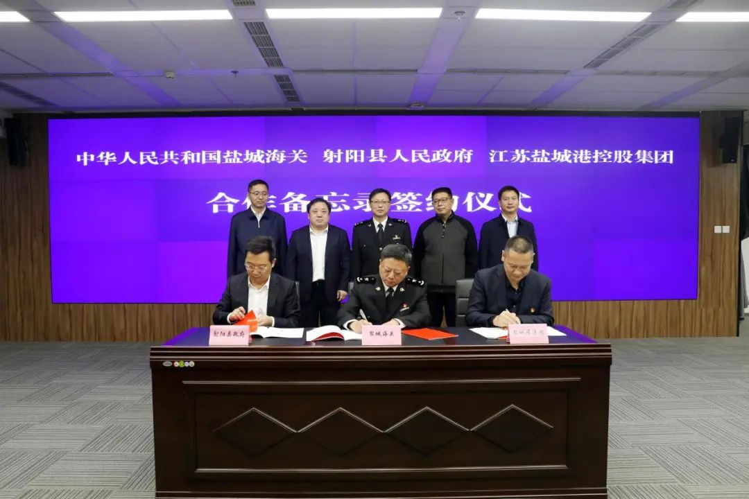 10月29日,盐城港口岸响水港区和射阳港区三方合作备忘录签约仪式在集团举行。盐城海关党委书记、关长胡正良,集团党委书记、董事长、总经理周正雄,市口岸办副主任、市商务局党委委员陈国亮,射阳县委副书记、代县长王宁,响水县委副书记、代县长陆文忠出席活动并鉴签。盐城海关党委委员、副关长李健,市口岸办副主任、市商务局党委委员、二级调研员韩玉军,射阳县委常委、常务副县长凌晓东,响水县副县长张炜生,集团党委委员、纪委书记周旭东等参加。集团党委委员、董事、副总经理陈正华代表集团进行签约。