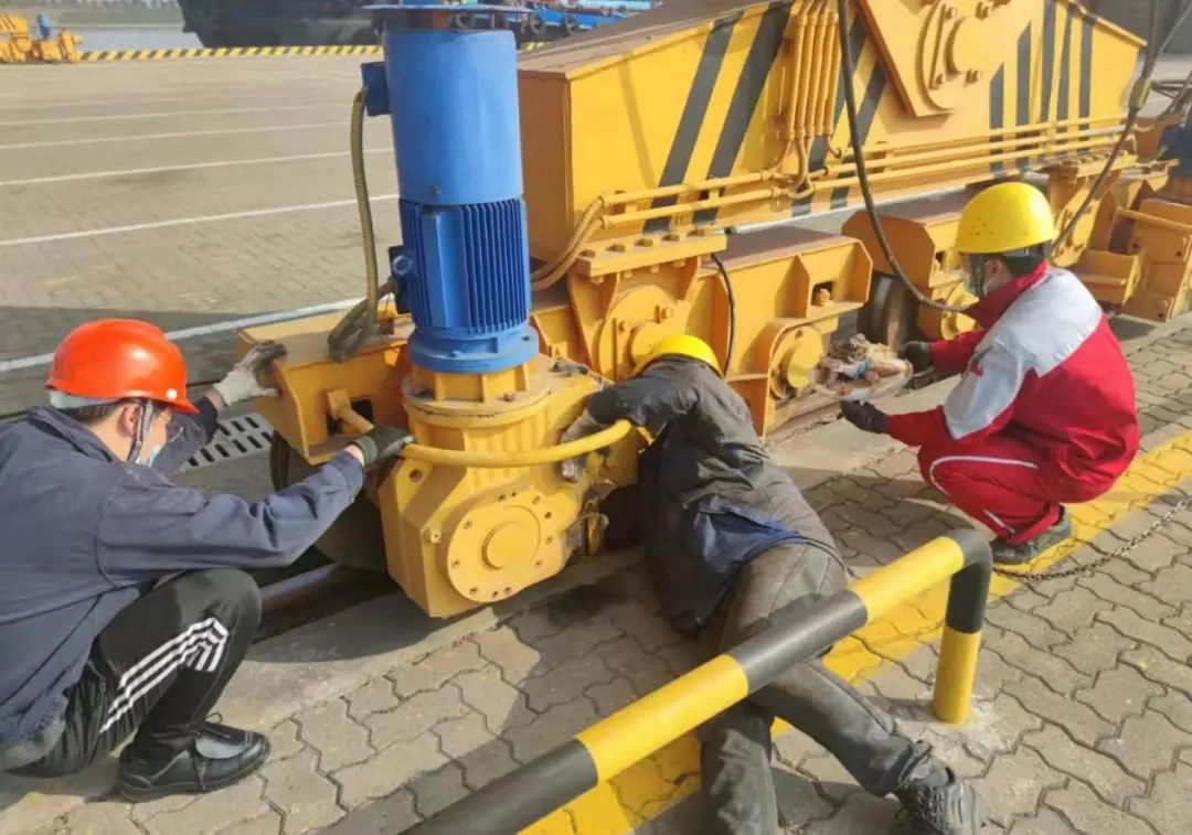 12月15日,盐城港科技集团下属设备工程公司前往阜宁港区,进行集装箱龙门吊的整机维保,并对吊具进行焊接修复。作为设备工程公司的首单业务,设备工程公司高度重视,派遣四名维保人员前往港区详细对接维护需要,顺利完成阜宁港区生产经营保障工作。