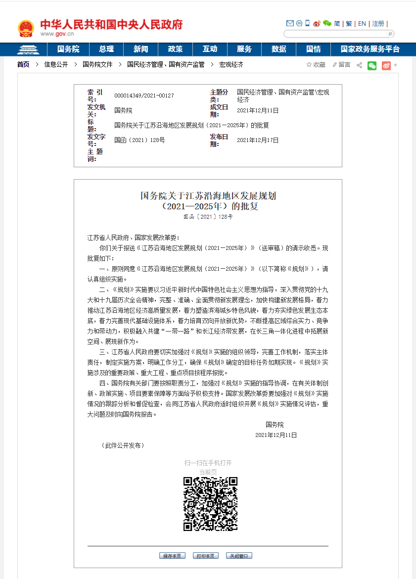 一、原则同意《江苏沿海地区发展规划(2021—2025年)》(以下简称《规划》),请认真组织实施。
