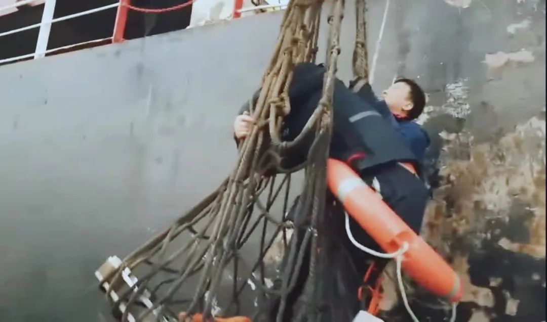 听闻呼救声后,码头负责人严浩当机立断,一声令下,立即启动救人应急预案,现场职工陈炳银、花卫军和高健翔等人迅速、果断开展救援。考虑到海水温度低,衣服湿透增加重量后落水者体力消耗极快,无法通过救生绳进行自救,便用救生绳系住救生圈抛至海中进行营救。