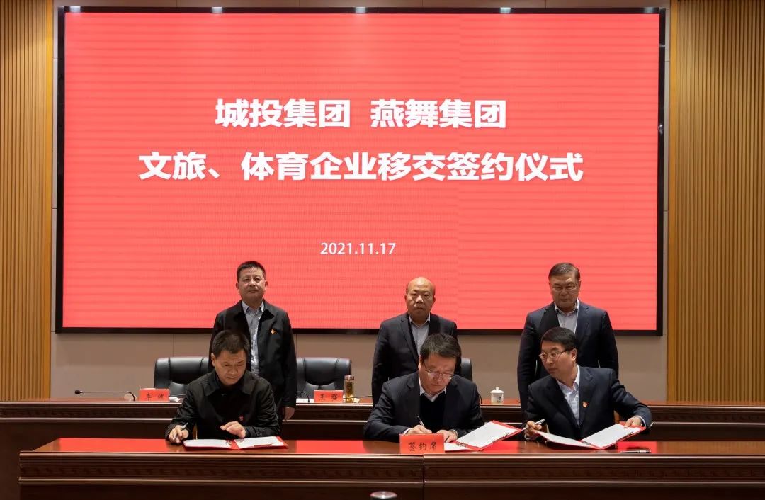11月17日,燕舞集团分别和悦达集团、城投集团签订文旅体育康养资产移交协议,标志着燕舞集团转型发展的序幕正式拉开。为做大文旅康养产业,做响燕舞品牌,经市委市政府研究决定,整合悦达集团、城投集团、演艺集团等国有企业近110亿元的文旅康养体育资产,并注入燕舞集团,将燕舞集团打造成为以文旅康养为主责主业的产业投资集团,推动燕舞集团转型发展,从而把盐城生态优势转化为发展优势,助推盐城高质量发展。