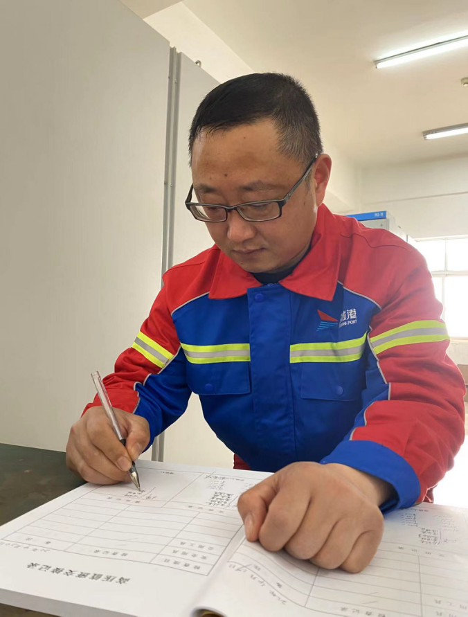 以前门机螺栓容易损坏,一旦坏了,要么请外面师傅过来修理,费时费工费用大,要么索性用电焊焊死,但也限制了门机的灵活性,降低了工作效率。现在王旭澜同志凭借多年的经验,研究革新设计了定位螺孔法,使门机螺栓的使用寿命大大提高,节约了大量的工作时间和成本,为公司经济指标连创新高提供了强有力的技术保障。王旭澜用埋头钻研业务技术,成长为电气设备的维修技术能手,用独特的工匠精神成就了他在电气维修领域的一片天地,也为自己赢得“先进个人”、“五一劳动奖章”等荣誉表彰。