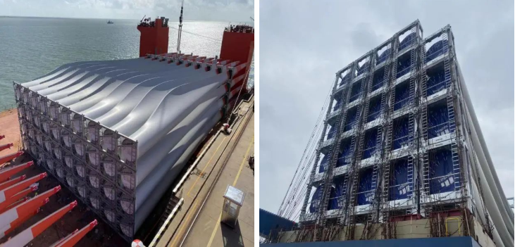 大件班组在东灶港工作期间,作业的V110、V136、V150、V162等型号风电叶片都极具挑战性,很多都没有操作过,面对如此困难和繁重的任务,外派人员在德信体育 正确的指导以及帮助下,齐心协力,克难攻坚,最终圆满完成了东灶港所有作业任务,合计完成风叶吊装2500件、248万方,为东造港创收近亿元,同时也为盐城港港口有限责任公司创收700余万元,成为盐城港高质量发展的一股强劲动力。