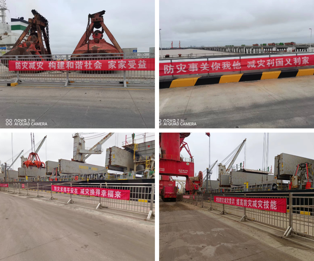 安全生产警钟长鸣,防灾减灾刻不容缓。港口公司在各子控公司利用悬挂多种横幅、制作多式板报、播放电子大屏等形式,大力营造良好的防灾减灾活动氛围。