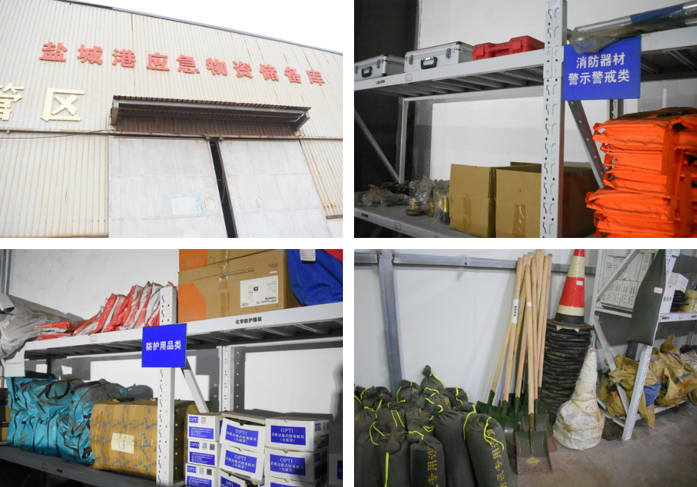 港口公司高度重视应急物资储备工作。公司建有应急物资专用储备库,设专人对应急储备库进行管理,确保各类应急物资时刻规范到位。并在各子(分)公司设有应急物资临时存放点,确保在突发情况下应急物资能及时响应。