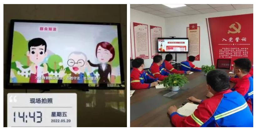 左图:(保税公司组织观看民法典视频)