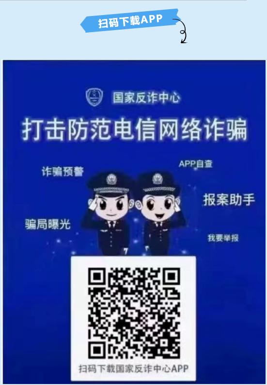 “国家反诈中心APP”是由公安部刑事侦查局提供的用于接受诈骗举报的APP。它可以免费提供防骗保护,当收到涉嫌诈骗的电话、短信、网址或安装涉嫌诈骗的APP时,可以智能识别预警;并可以对非法可疑的电信网络诈骗行为进行在线举报,为公安机关提供更多的反诈线索,在后台及时封杀;当涉及陌生账号转账时,可以验证对方的账号是否涉嫌诈骗,及时规避被骗风险;平台还会定期推送防诈骗文章、曝光最新诈骗案例,提高防骗意识。