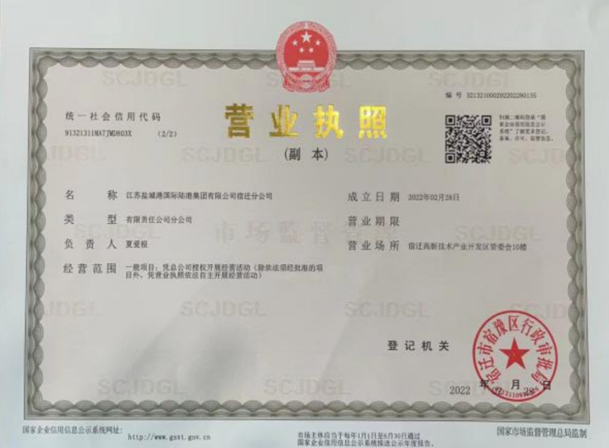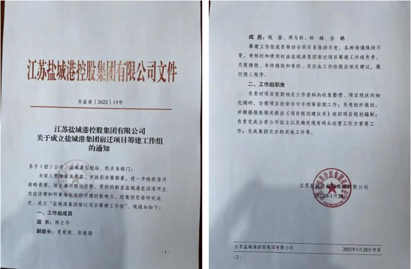 2月28日,江苏盐城港国际陆港集团宿迁分公司成立;